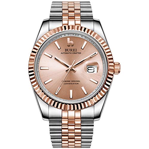 BUREI Mens Automatic Watches Analog Date Display with Stainless Steel Band